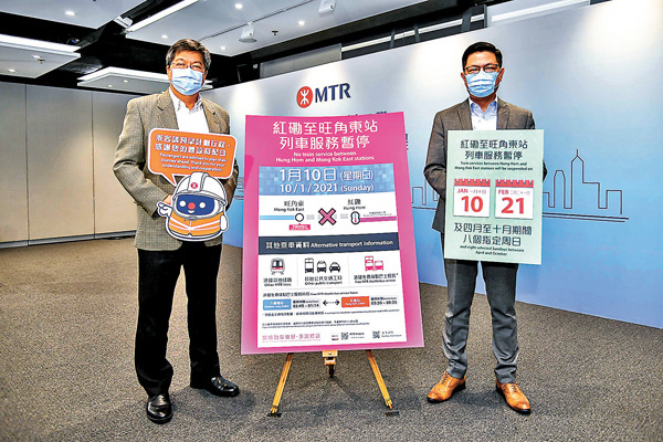 港鐵明日停旺角東至紅磡服務紅磡站出閘免費設接駁巴士 17 46 20210109 港聞 即時新聞 明報新聞網
